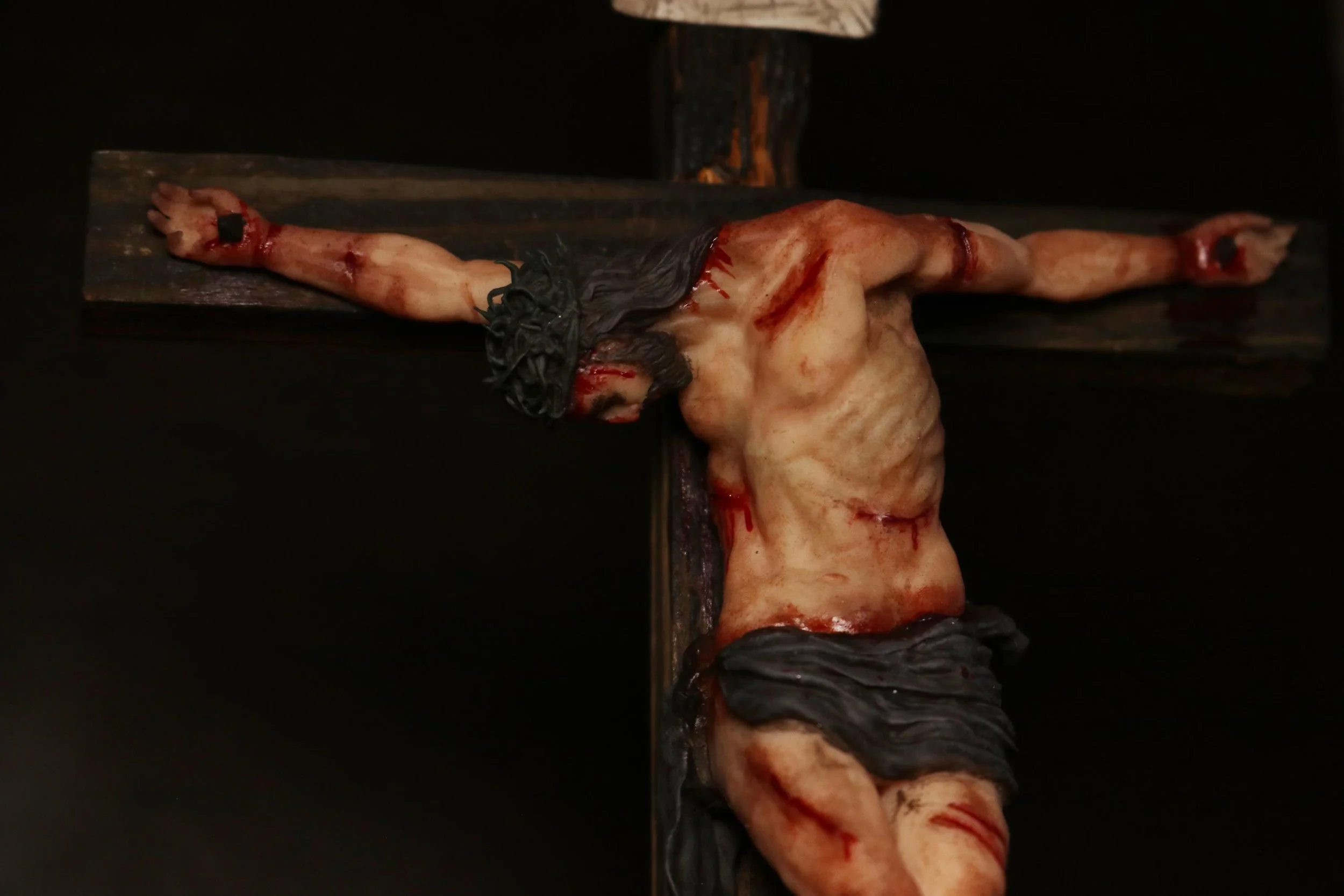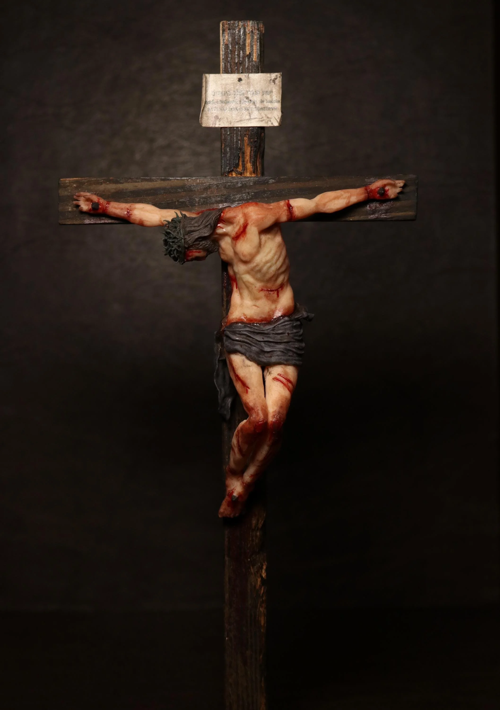 Originally sculpted by hand in clay, the corpus of Christ was 3D scanned and resin printed to faithfully preserve the handmade detail and expressiveness of the original work. Each figure is then diligently and prayerfully hand-painted, capturing the solemn moment when Christ, having submitted His spirit to the Father, bows His head in death.