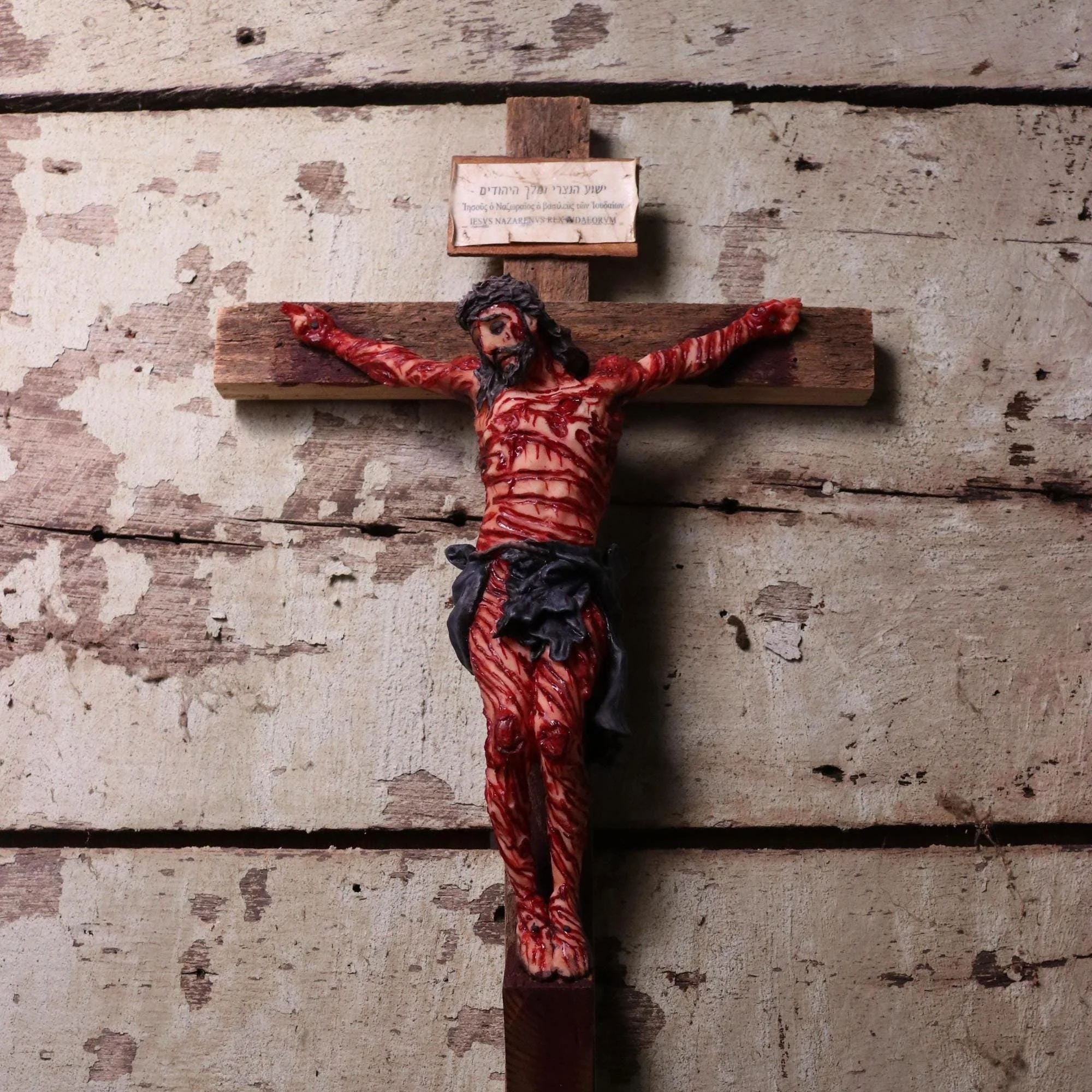The Agony Crucifix | 20in Reclaimed Wood Cross, Resin Corpus